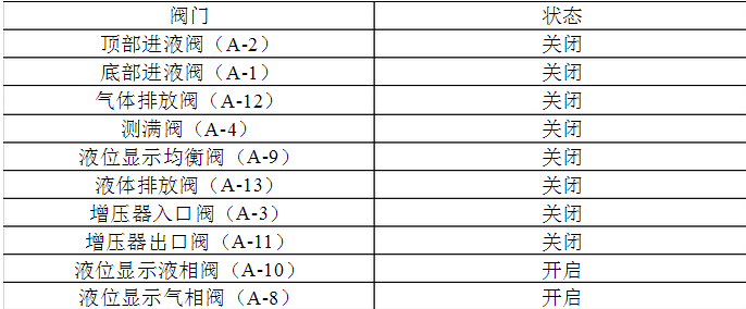 3.2.2除增壓器入口閥和出口閥(A-3或A-11)及液位計液相閥和液位計氣相閥(A-10或A-8)外,關閉所有閥門。